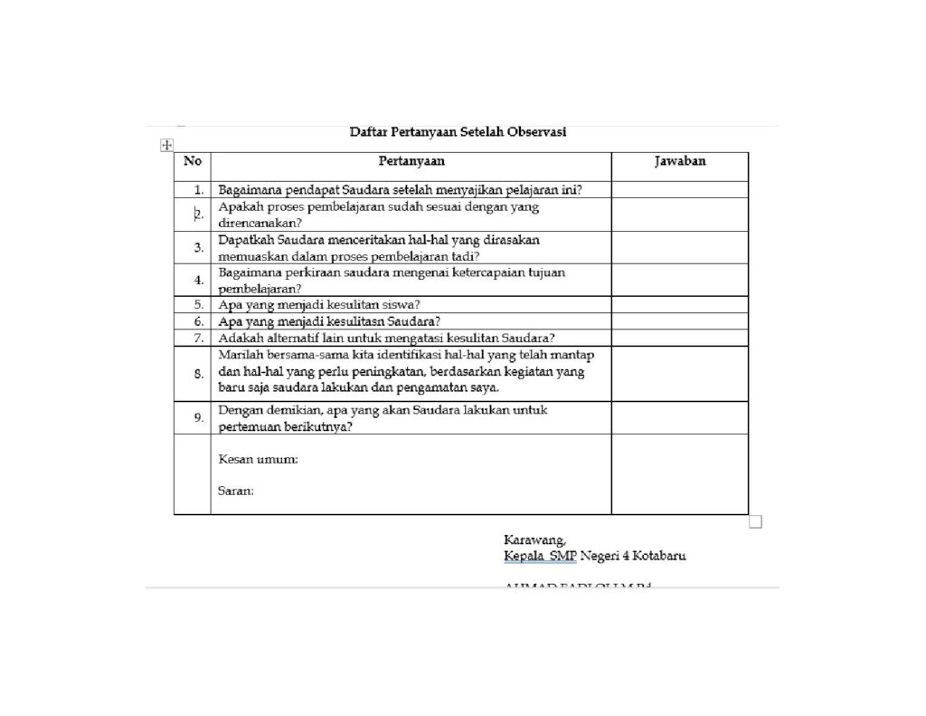 Adapun instrument wawancara setelah pembelajaran dapat dilihat di bawah ini.