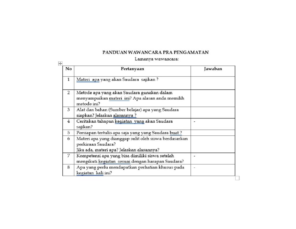 Sebelum supervise pelaksanaan pembelajaran, kegiatan yang dilaksankan adalah pertemuan antara kepala sekolah sebagai supervisor dengan guru yang akan di supervise untuk membicarakan hal-hal yang terkait dengan pelaksanaan pembelajaran yang akan dilaksankan. Adapun sebagai panduan dalam melaksanakan wawancara sebelum melaksankan pembelajaran dapat di lihat di bawah ini.