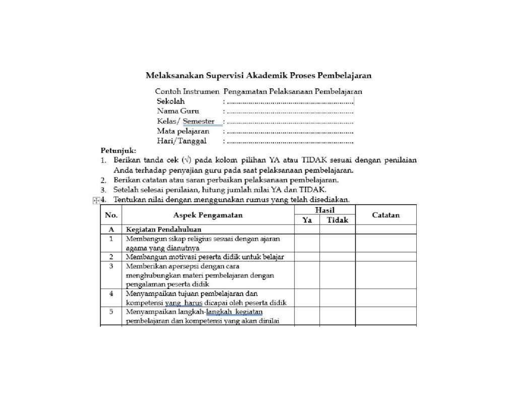 Untuk lebih jelasnya, Intrumen-intrumen pelaksanaan supervisi dapat di buka di link: