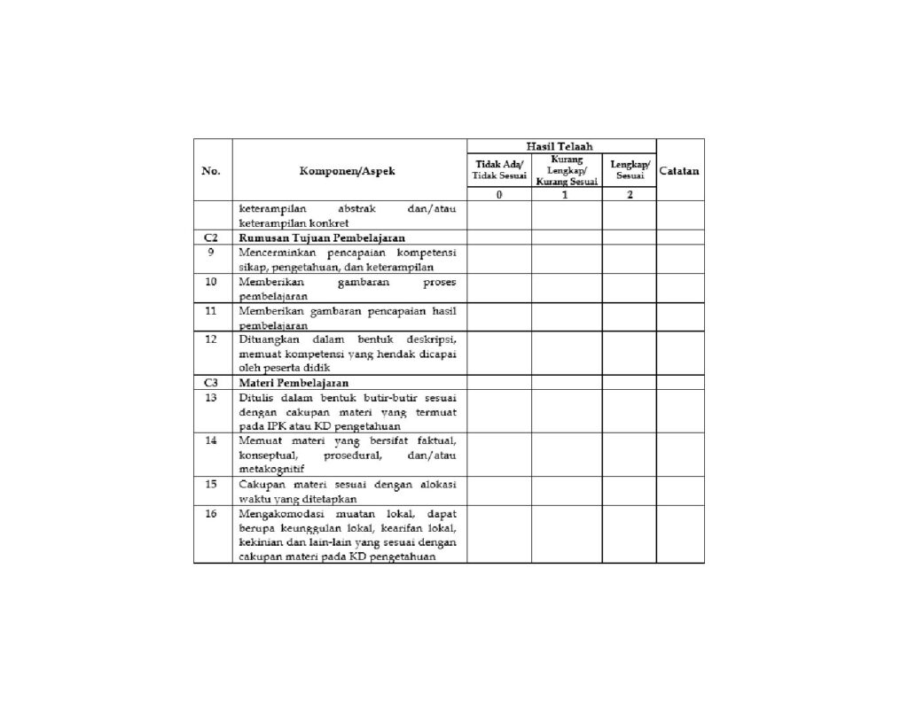 Berdasarkan Modul Pengembangan Supervisi Akademik dalam Implementasi K13 Kementerian Pendidikan dan Kebudayaan tahun 2018, terdapat 12 komponen Perangkat pembelajaran yang menjadi objek supervisi yaitu : (1) Kalender Pendidikan;(2) Program Tahunan; (3) Program Semester; (4) Silabus; (5) RPP; (6) Jadwal Pelajaran; ( 7) Agenda Harian; (8) Dokumen KKM; (9) Daftar Hadir (10) Daftar Nilai (11) Buku Pedoman Guru; dan (12) Buku Teks Pelajaran.