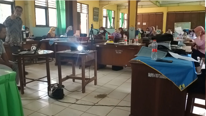 Model workshop di SMPN 4 Kotabaru adalah “ Daring dan Luring”